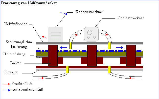 darunterliegenden Raumes getrocknet
